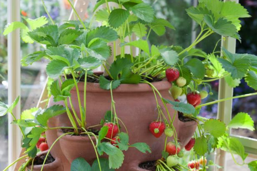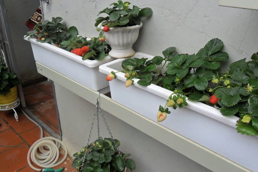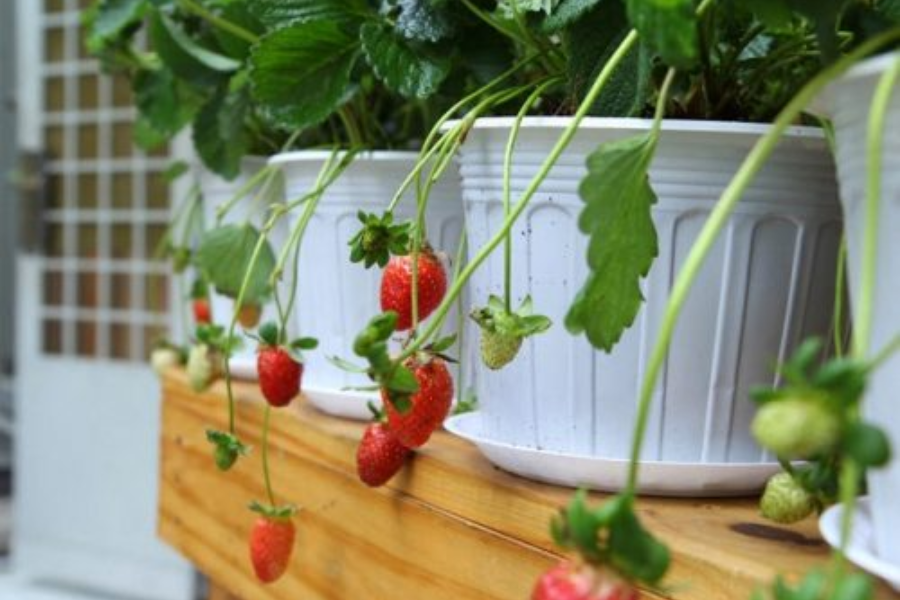 Những chậu có kích thước độ dài lớn là loại phù hợp nhất để tiến hành trồng cây dâu tây. Ngoài ra, có thể trồng loại cây này vào những chậu treo.