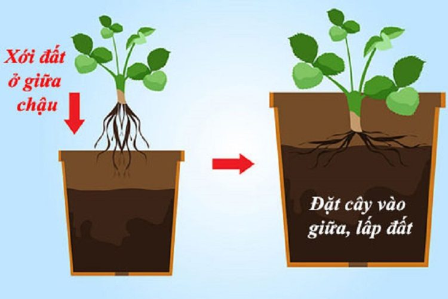 Lưu ý: Chỉ nên đổ đất cao ngang cổ rễ, không nên lấp kín cả cây.