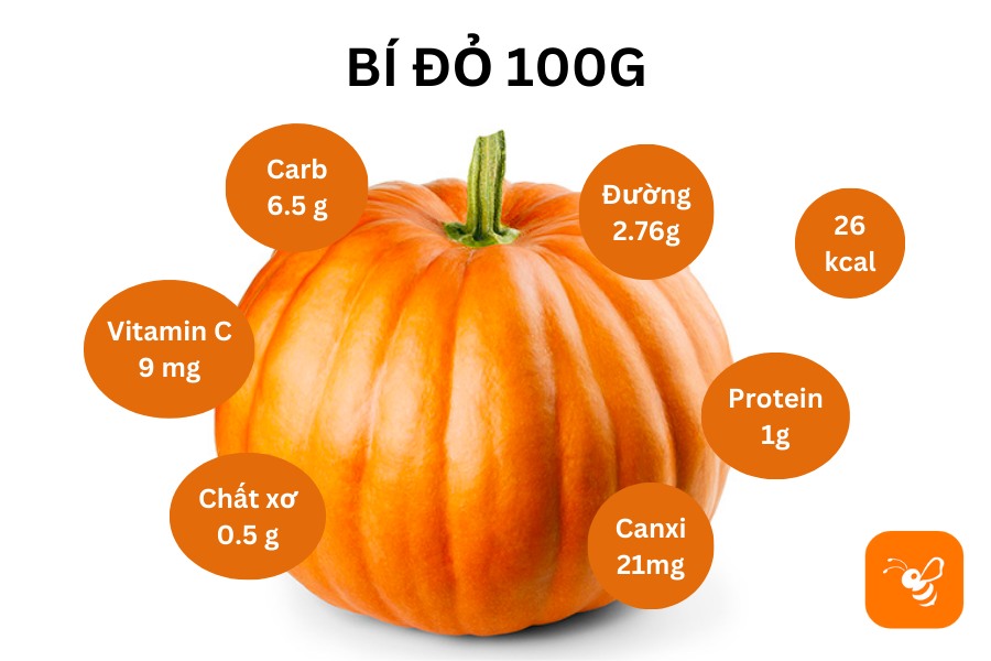 Trong thành phần bí đỏ có rất nhiều các chất dinh dưỡng có giá trị. Theo Bộ Nông nghiệp Hoa Kỳ, trong 100 gram bí đỏ sống bao gồm: