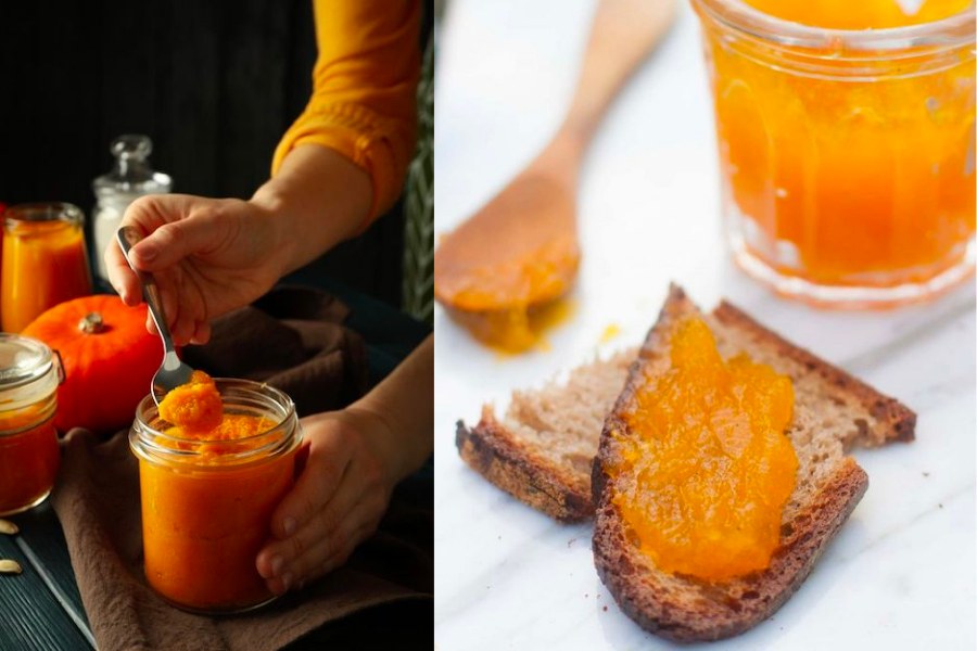 Công thức mứt bí đỏ rất đa dạng. Nếu bạn thích mứt có vị mang hương vị mùa thu thì nguyên liệu sẽ gồm bí ngô nghiền, đường và quế. Bánh mì nướng, sandwich phết với mứt bí đỏ thích hợp cho bữa ăn sáng thơm ngon.