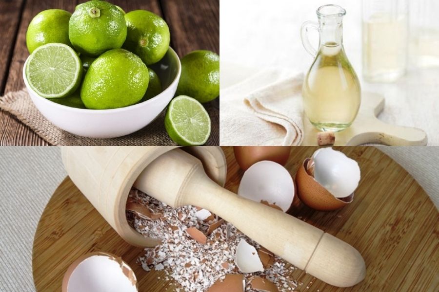 Bạn áp dụng theo cách vò nát 6 quả trứng cho vào bên trong các đồ dùng cần làm sạch, sau đó vắt hai quả chanh hoặc một nửa cốc giấm.