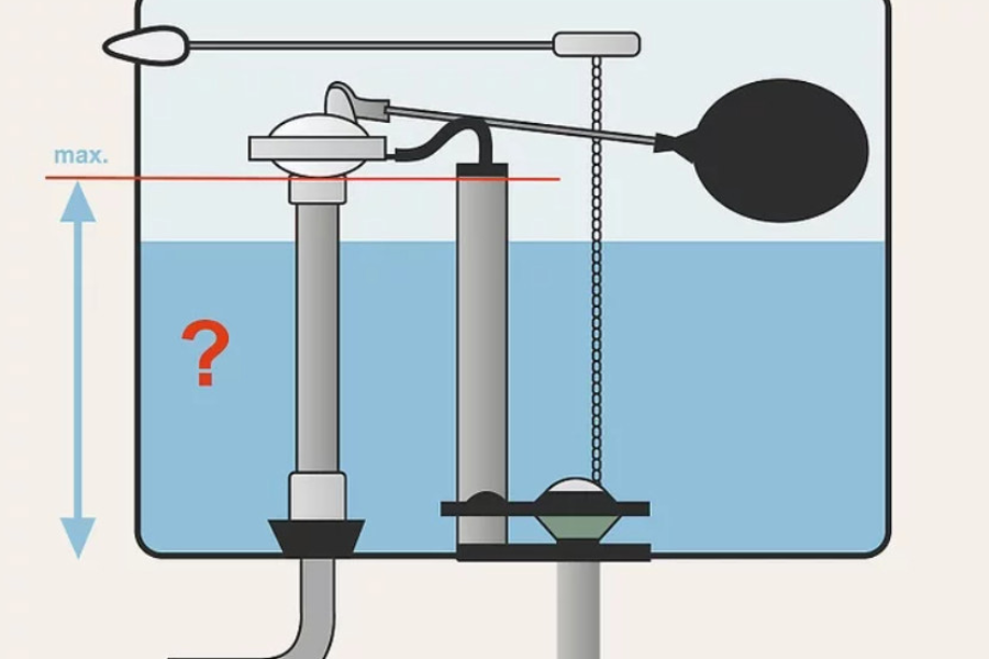 Nguyên nhân nữa khiến bồn cầu rỉ nước là bóng phao nước bị điều chỉnh quá mức. Thông thường, két bồn cầu sẽ duy trì mực nước dưới 2,5 cm đến 4 cm so với đầu ống tràn.