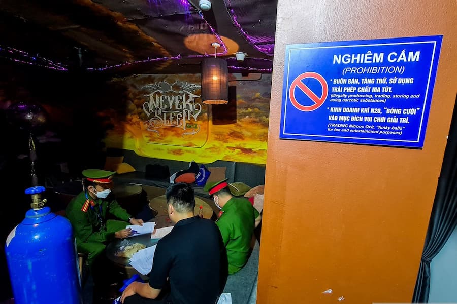 Đối với các mức vi phạm liên quan đến khí cười thì hình phạt có thể từ 3 năm tù trở lên. Gần đây, những vụ án liên quan đến khí cười điển hình là việc vi phạm của quán bar New Golden Pine, Đà Nẵng đã bị Đội Cảnh sát điều tra tội phạm về ma túy Công an Quận Sơn Trà phối hợp với Công an tại phường An Hải Bắc đã kiểm tra, phát hiện và xử phạt nặng.