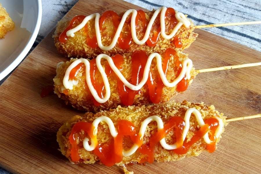Trừ phần nhân, thành phần chính tạo ra vỏ bánh hotdog là bột mì và bột nở. Sau khi được nhào nặn, nêm nếm phụ liệu. Người làm sẽ nhúng toàn bộ phần nhân bánh vào hỗn hợp vỏ và chiên cho tới khi vàng giòn.