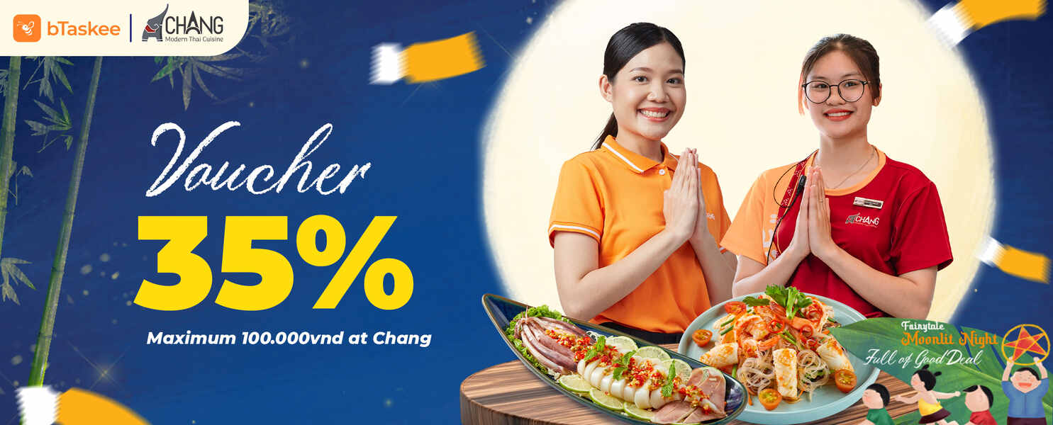 Để tháng đoàn viên thêm ấm áp, bTaskee và Chang Modern Thai gửi tặng ưu đãi đặc biệt, mang đến cho bạn cơ hội thưởng thức hương vị Thái Lan, tạo nên những khoảnh khắc sum vầy ý nghĩa bên gia đình và người thân!