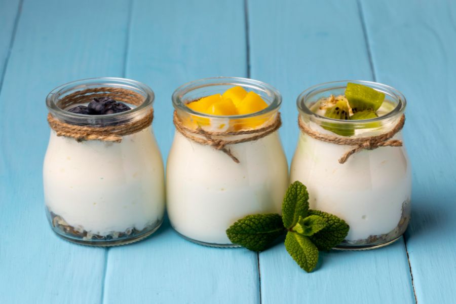 Vào những buổi sáng bận rộn, không quá nhiều thời gian chuẩn bị bữa sáng cho bé thì các mẹ có thể thay thế bằng sữa chua và trái cây nhé. Các mẹ hãy lựa chọn những loại trái cây yêu thích của trẻ. Cắt thành từng miếng nhỏ và trộn đều với sữa chua.