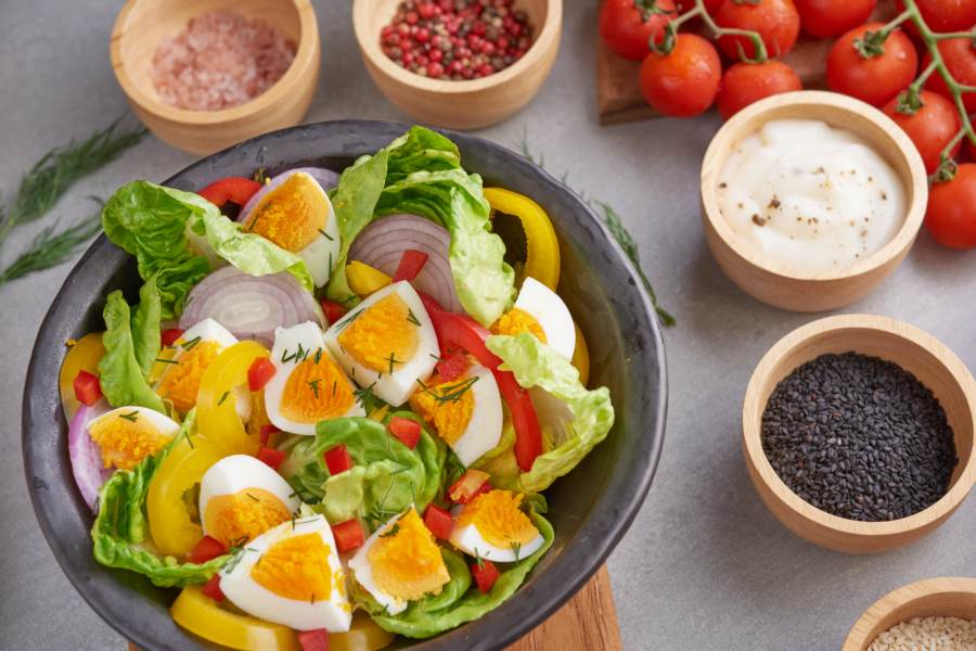 - Ngày 3: Một ngày tươi xanh với đĩa salad rau củ và một quả trứng. Tuy lượng thức ăn không nhiều nhưng với những người ăn kiêng thì đủ để đảm bảo cung cấp năng lượng cho cơ thể hoạt động một ngày.