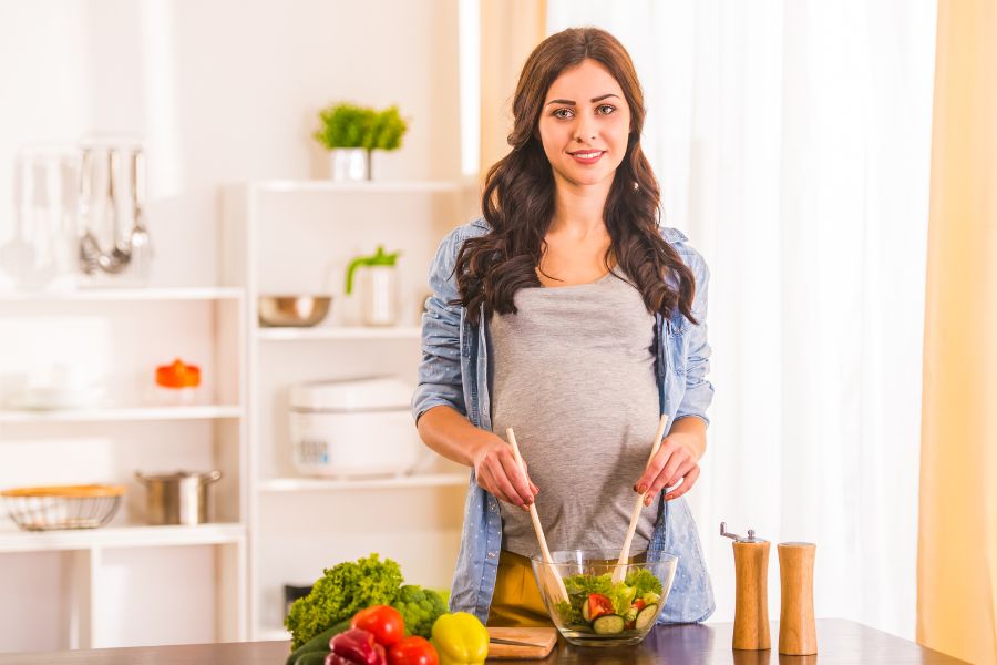 - Món ăn từ rau, quả, củ: Mẹ bầu có thể ăn dưới dạng salad hoặc ép nước để uống.