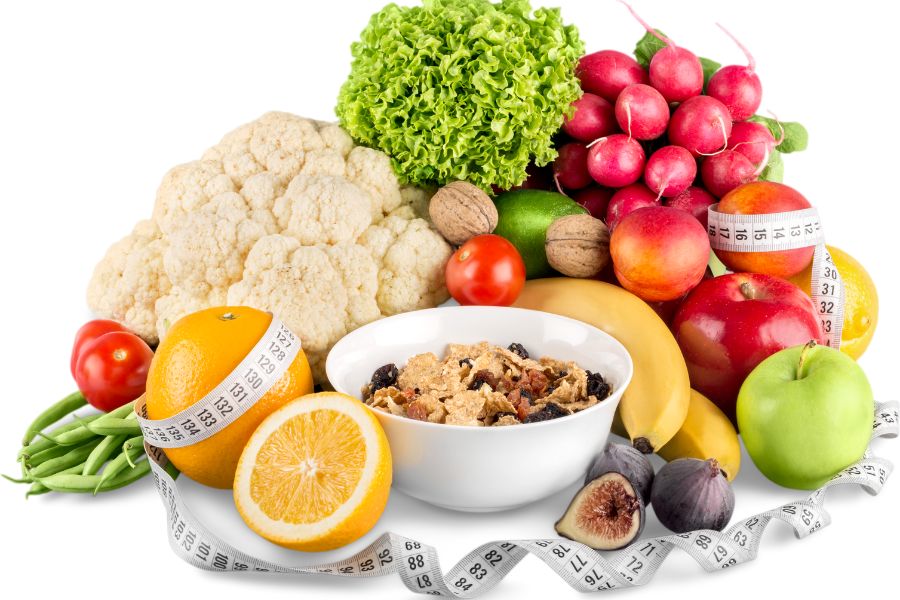 - Trái cây và rau quả: Trái cây và rau quả cung cấp nhiều chất xơ và vitamin cho cơ thể, giúp tạo cảm giác no và giảm cảm giác thèm ăn.