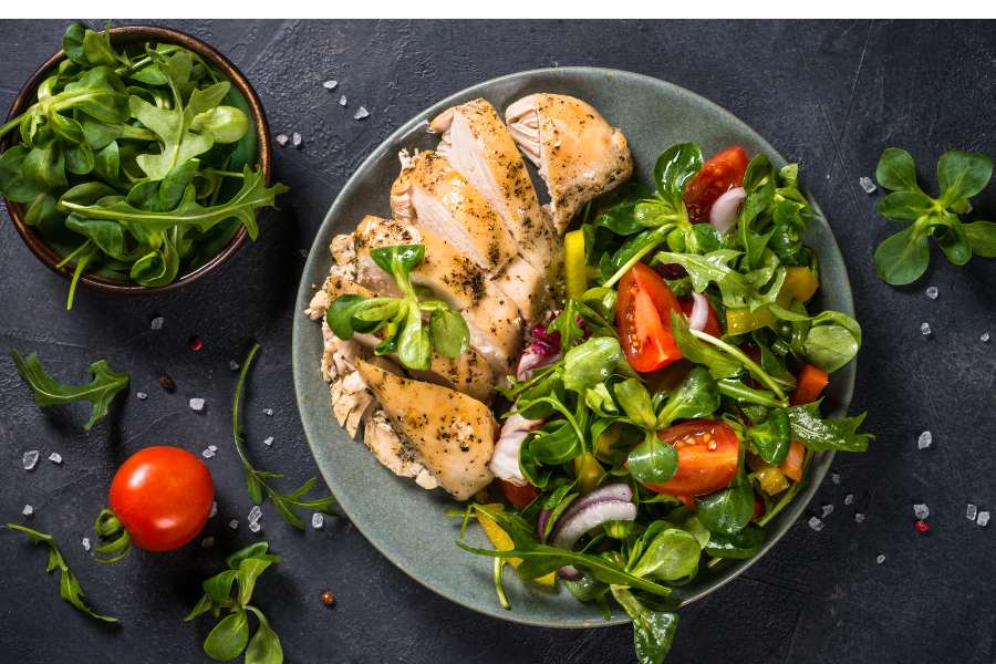 Trong món ăn này sẽ có đầy đủ lượng protein, rau củ xanh, và các lượng vitamin đầy đủ. Bạn có thể làm món này với những thực phẩm rau xanh tự nhiên, kết hợp đầy đủ thêm ức gà luộc để làm mới hương vị. Chúng có thể giúp bạn đốt cháy lượng mỡ thừa không cần thiết.