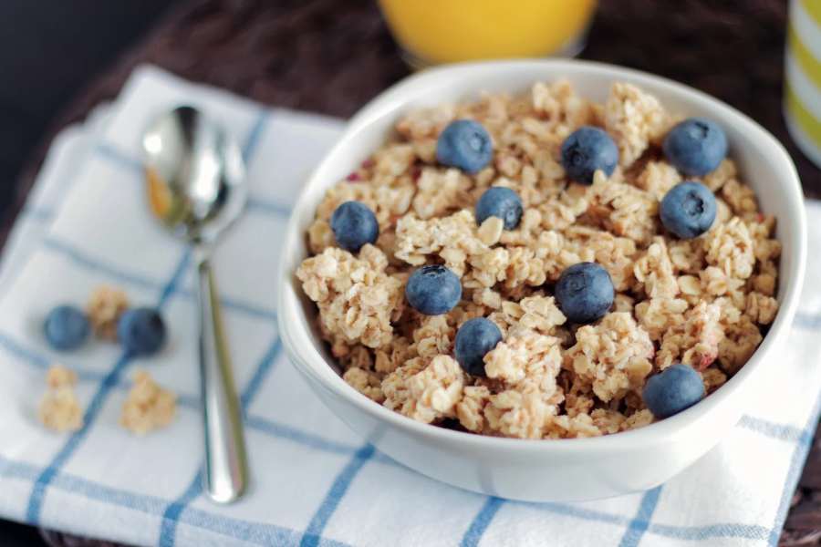 Bạn có thể ăn ngũ cốc trái cây và sữa chua, hay là bánh mì ngũ cốc, hoặc cháo ngũ cốc. Trong những món ăn này đều giàu dinh dưỡng và chứa nhiều vitamin E, B1, B2, các chất khoáng cần thiết bao gồm: canxi, sắt, photpho,…