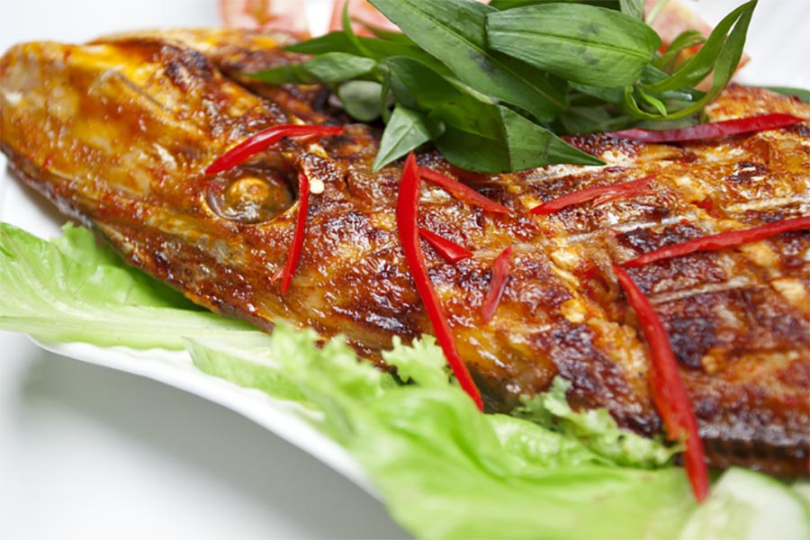 - Lấy cá ra khỏi lò, rưới phần nước ướp cá còn lại lên, nướng thêm khoảng 10 phút nữa là hoàn thành món ăn.