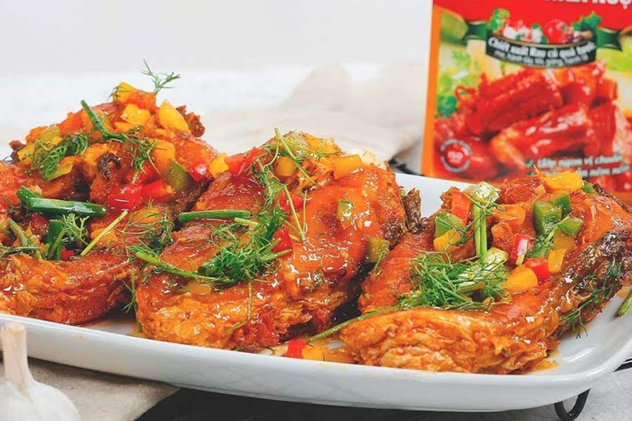 - Nêm nếm gia vị để cá vừa miệng, thêm dầu điều giúp màu sắc đẹp mắt hơn.