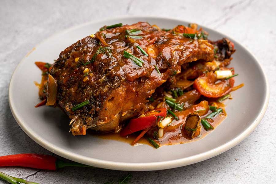 - Lấy phần sốt ướp cá đun sôi. Khi cá chín gắp ra đĩa thì đổ phần sốt này lên là hoàn thành.