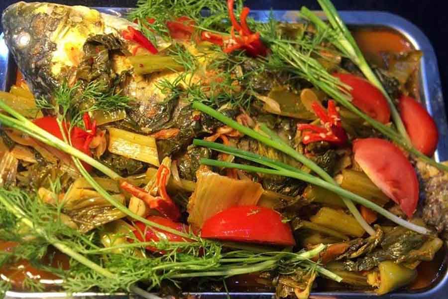Tiếp theo trong danh sách cá chép nấu món gì ngon, bạn hãy thử cách xào cùng dưa chua. Món này khá dễ làm, hương vị chua cay hài hòa và cực kỳ bắt cơm. Tuy nhiên, bạn cần chọn loại dưa muối vừa chín tới, không bị quá mặn và khú.
