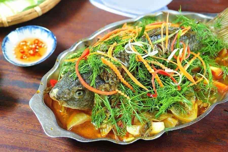 Cá hấp bia thường được cuốn cùng với bún và một số loại rau sống ăn kèm. Vì thế, khi tìm kiếm cá chép nấu gì cho ngon để đổi vị cho bữa cơm gia đình thì đây sẽ là sự lựa chọn rất đáng để bạn cân nhắc.