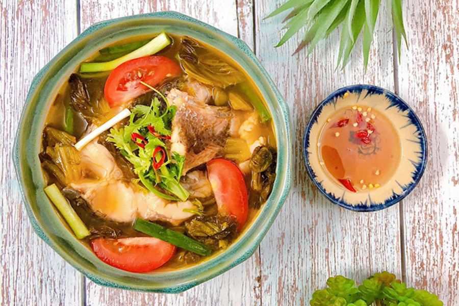 - Bước 4: Múc canh chua cá ra tô, trang trí với rau răm, hành lá. Sử dụng nước cốt chanh để thêm vị chua (tuỳ khẩu vị).