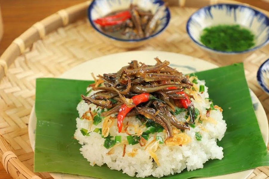 Cá cơm khô nấu món gì ngon? Xôi cá cơm khô là một ý tưởng tuyệt vời. Xôi mềm dẻo, vị beo béo của dầu mỡ hành cùng những miếng cá cơm khô giòn sần sật thấm đẫm nước mắm mặn ngọt chắc chắn sẽ khiến bạn “phát nghiện” ngay lần ăn đầu tiên!