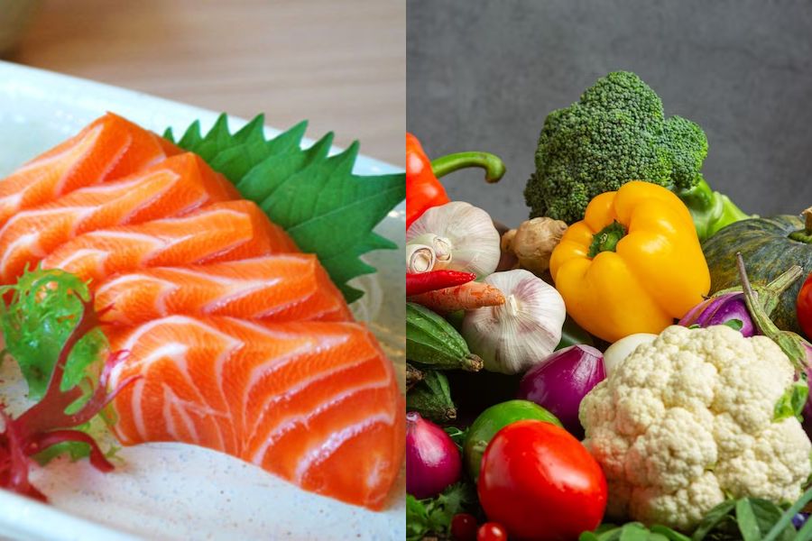 Việc kết hợp cá hồi cùng rau củ sẽ tạo cảm giác thanh mát tăng chất dinh dưỡng cho cơ thể và lượng calo nạp vào khá thấp. Để hiệu quả giảm cân cao nhất bạn không nên ướp quá nhiều gia vị.