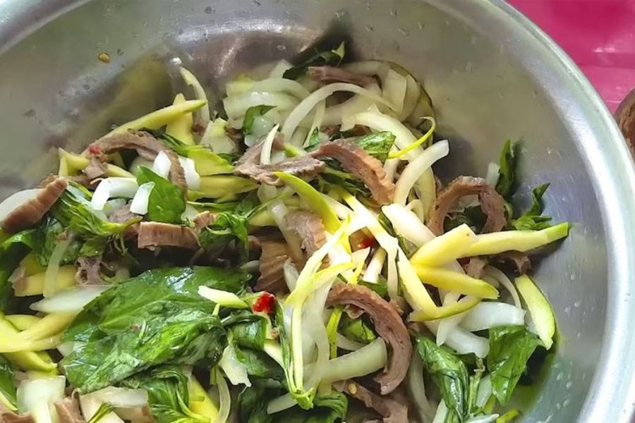 Món gỏi/nộm bao tử cá ngừ đại dương được kết hợp với các nguyên liệu tươi mát và gia vị thơm ngon tạo nên một món ăn hấp dẫn.