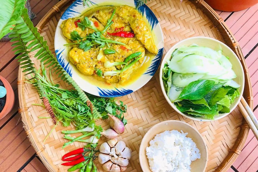 - Bước 5: Khi ăn, sẽ nhúng cá trực tiếp vào nước dùng, và ăn với bánh tráng, bún và rau xanh.