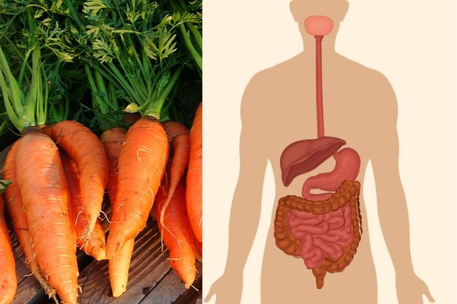Cà rốt chứa nhiều nước và hàm lượng chất xơ cao. Chúng tham gia vào quá trình tiêu hóa, thúc đẩy hệ tiêu hóa hoạt động trơn tru. Cải thiện hiệu quả tình trạng táo bón và xây dựng 1 hệ tiêu hóa khỏe mạnh.