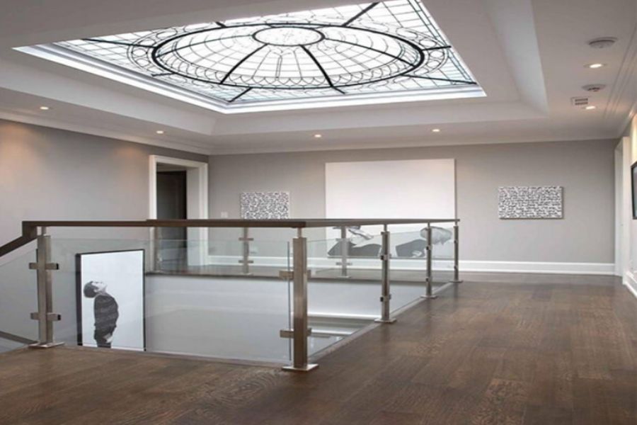 Trong các kiểu mái che giếng trời, chất liệu kính cường lực cũng được đánh giá cao với nhiều ưu điểm nổi bật.