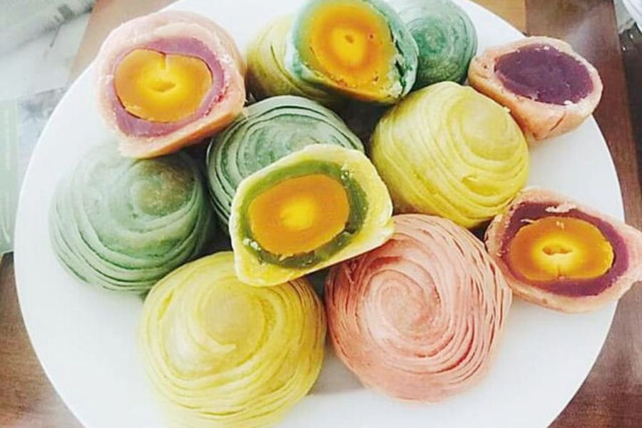 Bánh ngàn lớp là loại bánh mới phổ biến vài năm gần đây, thu hút đông đảo giới trẻ bằng hình dáng nhỏ nhắn có nhiều lớp vỏ. Bên trong là phần nhân bánh mochi dẻo thơm, trứng muối béo mặn và trứng chảy ngọt nhẹ tạo cảm giác thơm ngon lạ miệng cho bánh. Loại bánh này cũng rất đa dạng về nhân như đậu xanh, trứng muối, cà phê, chocolate…