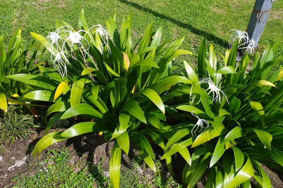 Cây có 2 gam màu chủ đạo là xanh và vàng. Lá cây thẳng tắp, mọc trực tiếp từ gốc. Hoa của cây có màu trắng, mọc thành chùm rất đẹp.