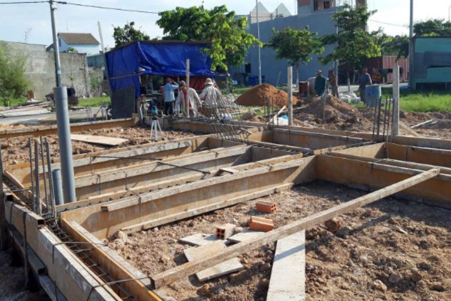 - Đào đất và thi công móng: Sau khi hoàn tất thiết kế, công nhân sẽ bắt đầu đào đất để chuẩn bị cho việc xây dựng móng. Quá trình này phải được thực hiện đúng quy trình và công nghệ để đảm bảo tính an toàn và độ bền của móng nhà.