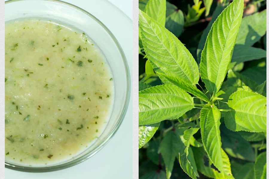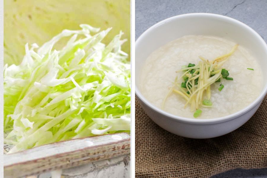 - Cháo rau đay + cá cơm giã nhuyễn.
