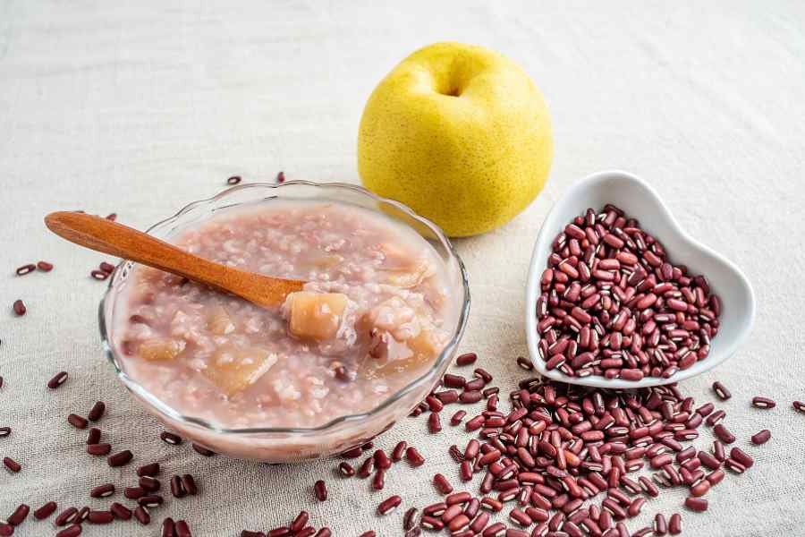 - Nước nấu từ lê + củ cải trắng + táo đỏ.