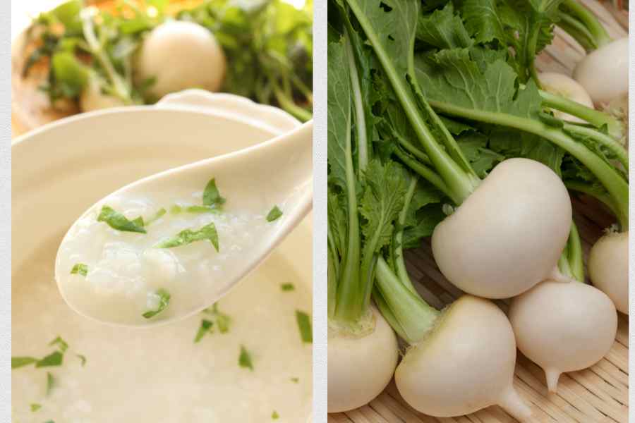 - Cháo củ cải trắng + cà rốt + thịt bò.