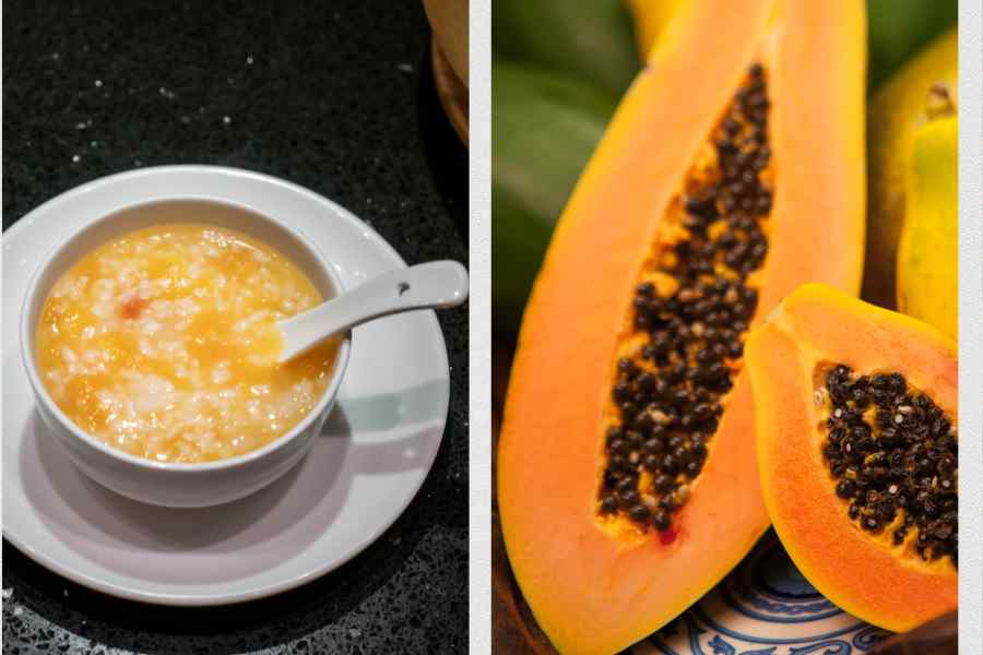 Lưu ý nhỏ dành cho mẹ là nên cho bé ăn đu đủ chín không sử dụng quả quá xanh và nên dùng ở tháng thứ 7 và tránh ăn quá nhiều bởi có thể khiến bé bị đau dạ dày hoặc gây vàng da. Dưới đây là một số món ăn gợi ý từ đu đủ: