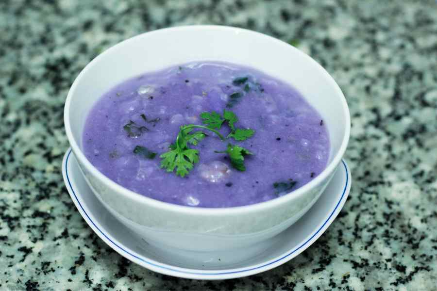 Khoai mỡ (hay khoai lang mõ, khoai mỡ tím) là một loại củ mà các mẹ thường nhầm lẫn với khoai môn vì đều là màu tím, nhưng khi nấu chín sẽ có vị ngọt thanh và mềm hơn.