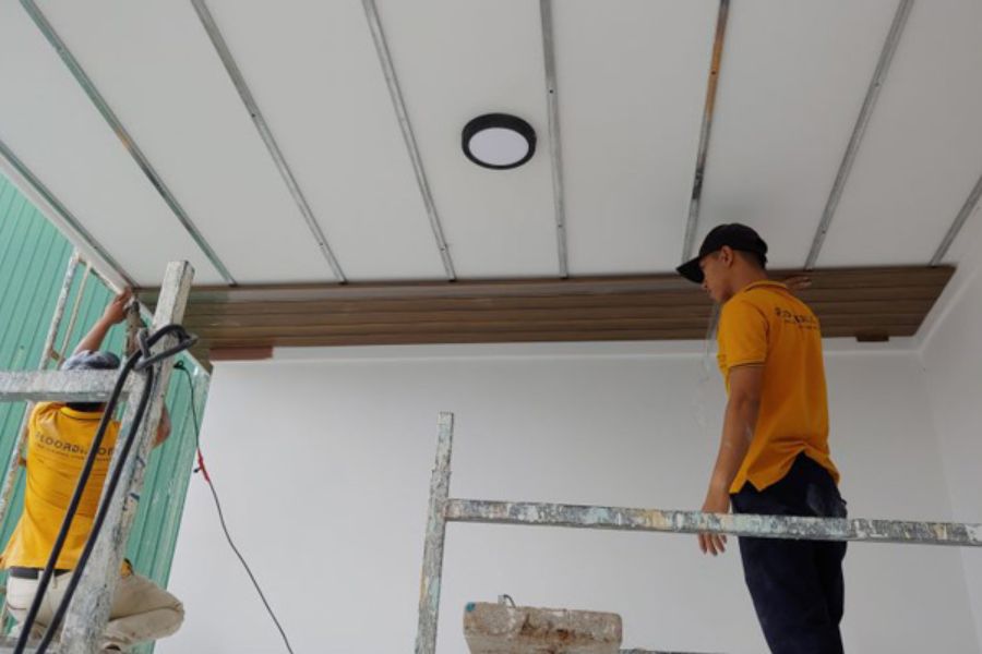 Đối với công đoạn này, chủ nhà phải trực tiếp giám sát thợ lắp đặt trong suốt quá trình họ thực hiện ốp trần để đảm bảo trần nhà được ốp đúng và đẹp nhất.