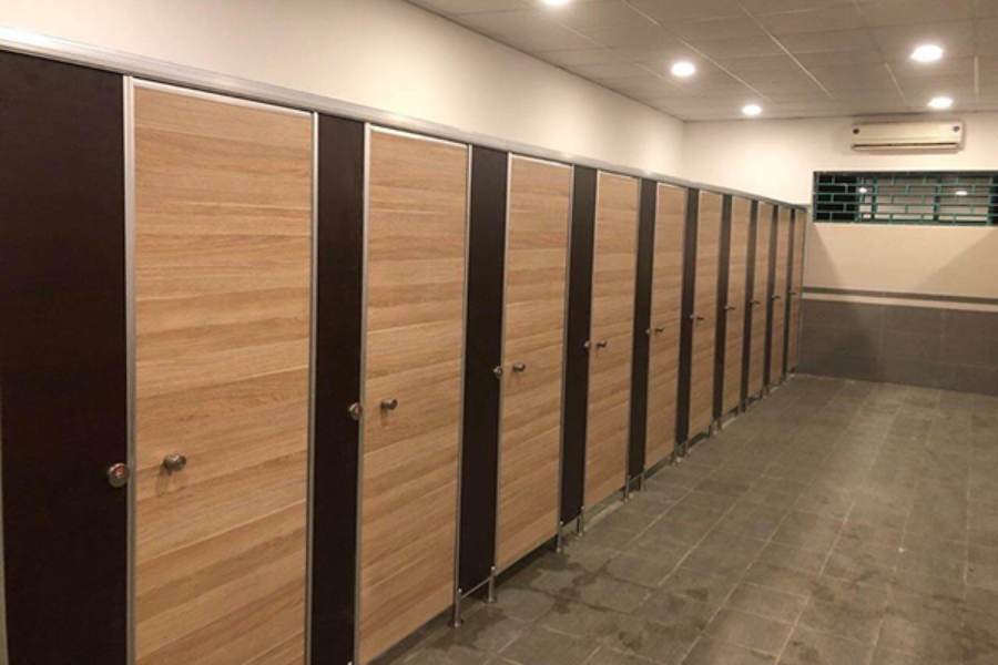Chất liệu gỗ công nghiệp cho các vách ngăn nhà vệ sinh và nhà tắm được ưa chuộng vì mẫu mã phong phú và độ bền tốt.