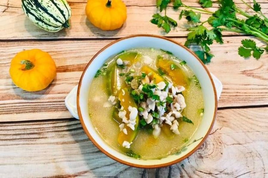 Nếu ưu tiên các món canh ngon mùa đông có vị thanh đạm thì đừng bỏ qua canh bí đỏ đậu phộng bạn nhé. Bí đỏ ninh nhừ vừa ngọt vừa béo ăn kèm đậu phộng bùi béo tạo nên món xanh đậm đà và đầy đủ dinh dưỡng.