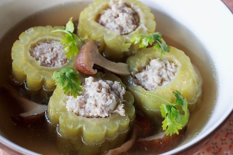 Món khổ qua nhồi thịt khi ăn có vị ngọt thanh của quả khổ qua hòa quyện cùng vị đậm đà của thịt, tạo nên một hương vị đặc trưng và hấp dẫn. Món ăn này thường được dùng kèm với cơm hoặc trong các bữa tiệc gia đình, các dịp lễ tết. Đây là món canh phổ biến trong các món canh ngon mùa hè.