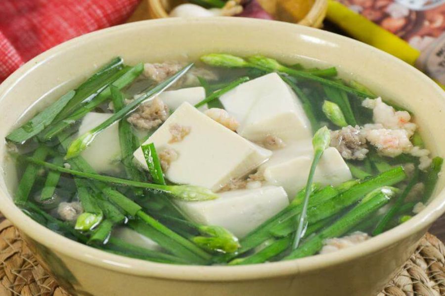 Canh hẹ đậu phụ được xem là một món canh quốc dân, bất kỳ ai cũng nghĩ đến món canh này đầu tiên trong top các món ăn giải nhiệt. Đậu phụ béo, mềm kết hợp với hẹ thơm thơm, dai dai.