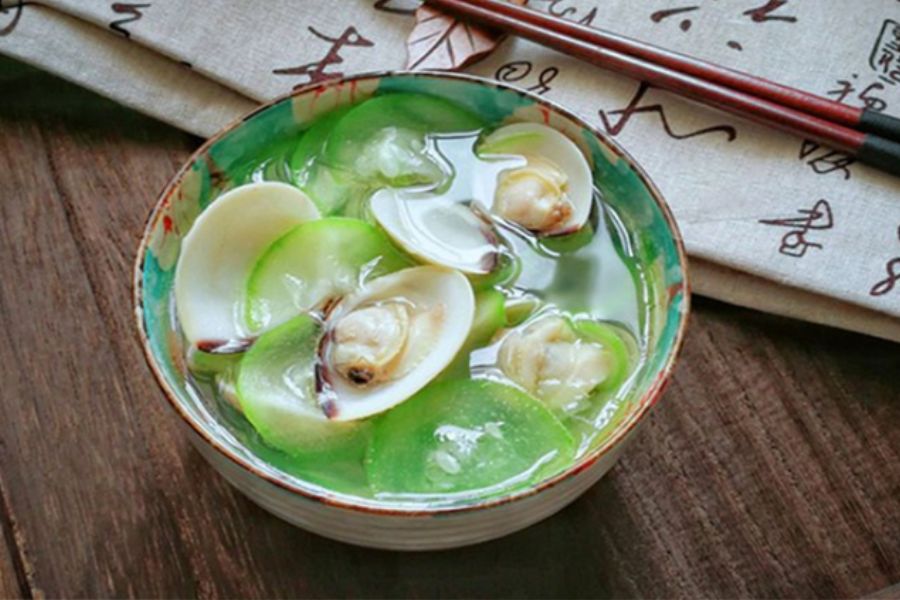 Tuy nhiên, bạn chỉ nên ăn canh vào buổi trưa vì nghêu và bầu đều có tính hàn nên ăn nhiều vào buổi tối sẽ gây lạnh bụng, khó tiêu.