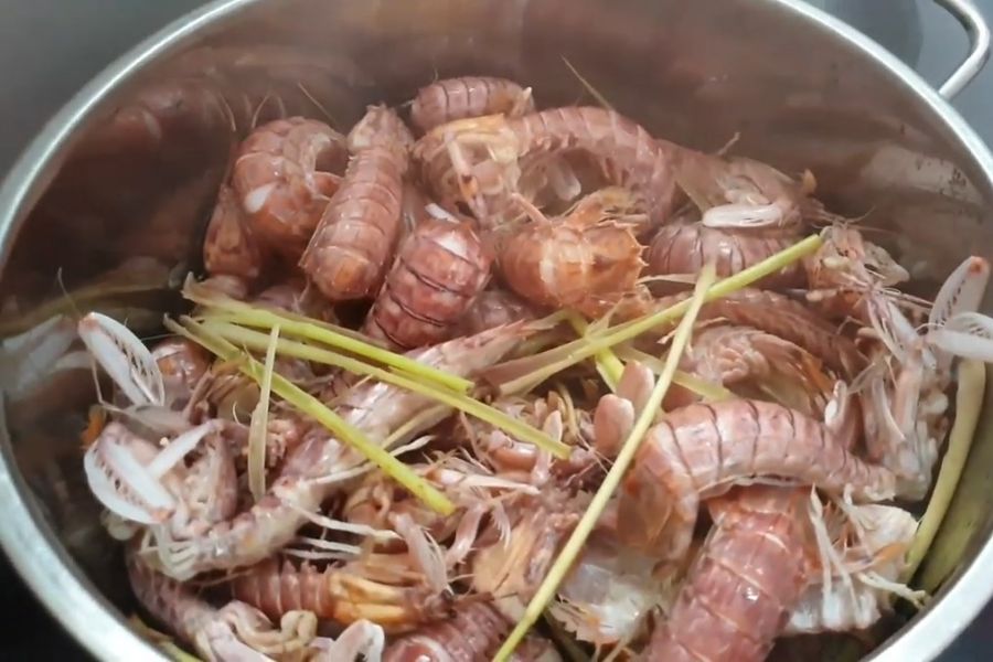 - Bước 1: Tôm rửa sạch, loại bỏ chỉ lưng. Hấp tôm 10 phút cho chín.