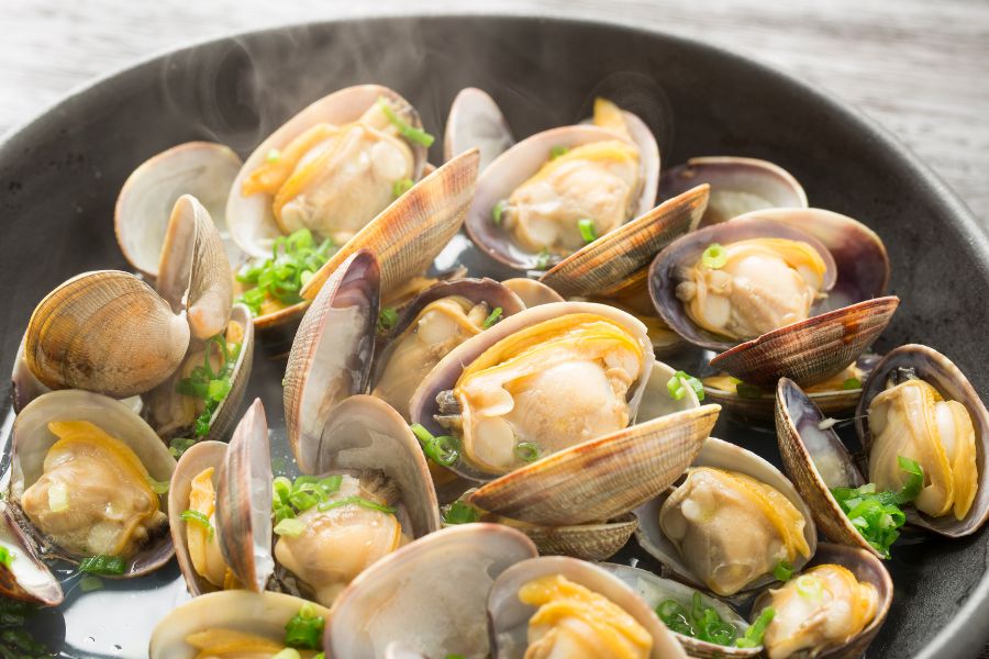 - Bước 3: Cho sò điệp vào nồi hấp chín từ 5 – 7 phút khi nước đã sôi