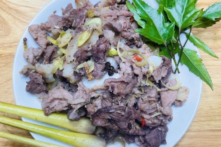 - Bước 3: Cho thịt nai đã ướp lên xửng, rắc sả cắt khúc và gừng thái lát mỏng quanh miếng thịt nai, hấp từ 1 – 2 tiếng tùy theo độ dày của thịt nai.