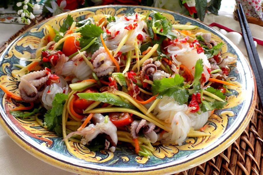 - Bước 5: Đổ từ từ nước sốt vào bạch tuộc rồi cho ngò rí, sả thái nhỏ vào cùng. Cuối cùng, bạn trộn đều tay và nêm nếm lại là có thể thưởng thức món ăn nổi tiếng trong các món nộm ngon hiện nay.