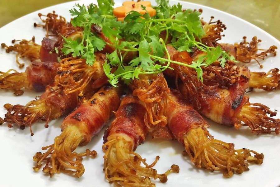 Ba chỉ bò mỹ cuộn nấm kim châm