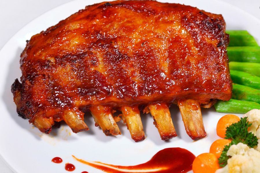 Cuối cùng, bạn đặt sườn lên vỉ và nướng đến khi sườn chín và có màu vàng đẹp mắt. Bạn có thể quét thêm mật ong để sườn không bị khô.