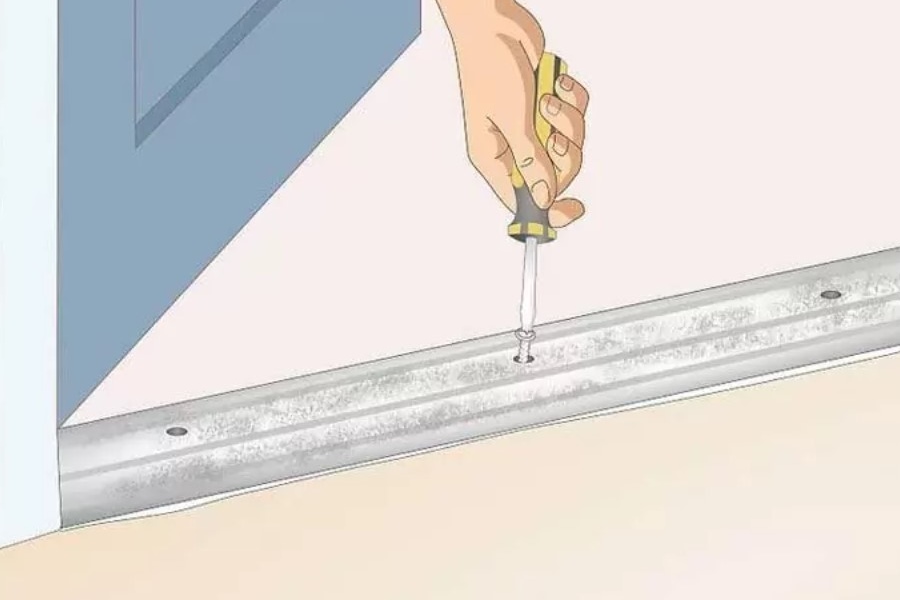 Bạn chỉ cần đặt thanh viền lên những vị trí đã đánh dấu ở bước 1. Dùng máy khoan để bắt tắc kê, cặn vít sao cho cố định được thanh viền lên tường. Bạn cố gắng để các thanh viền được cố định và thẳng hàng.