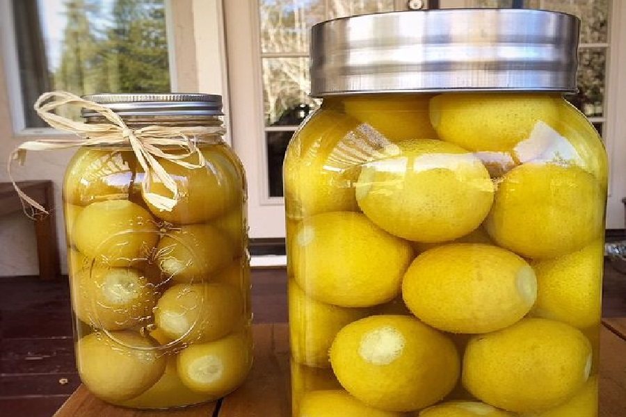 - Bước 6: Xếp chanh đã được phơi nắng vào lọ thủy tinh sạch, đổ dung dịch nước muối đến khi ngập hết chanh. Dùng vật nặng chèn lên trên để chanh không bị nổi, rồi đậy kín nắp.