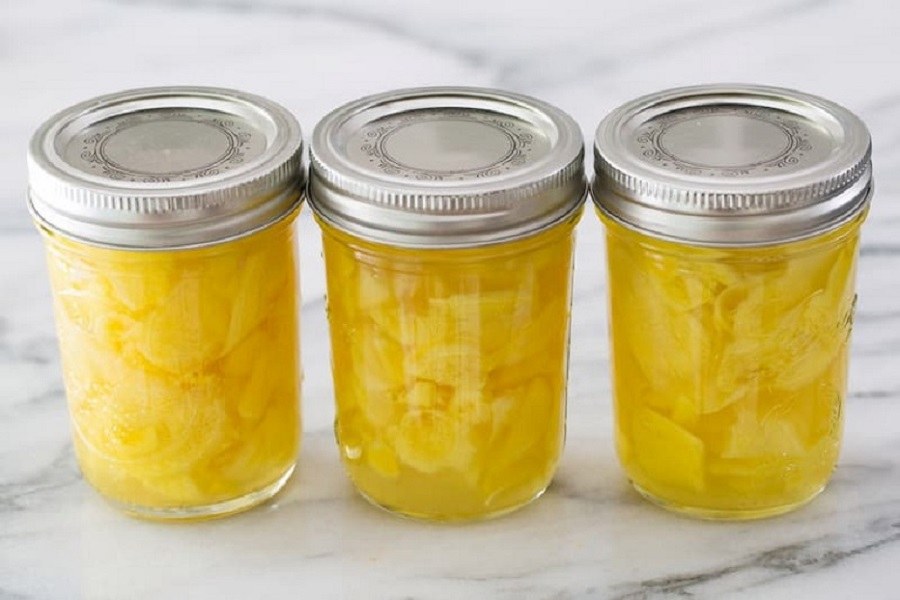 Ướp gừng với nước chanh, đường và muối rồi trộn đều lên. Cho hỗn hợp này vào lọ có nắp đậy kín và cho vào ngăn mát tủ lạnh. Với cách làm này gừng sẽ luôn tươi, giữ được vị thơm tự nhiên lâu ngày.